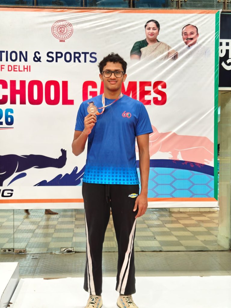 ಬೆಂಗಳೂರು, ಡಿ. 9: ರಾಷ್ಟ್ರೋತ್ಥಾನ ವಿದ್ಯಾಕೇಂದ್ರ – ಅರ್ಕಾವತಿಯ 10ನೇ ತರಗತಿಯ ವಿದ್ಯಾರ್ಥಿ ಭವೇಶ್ ಸಾಯಿ ಚೌಧರಿ ಅವರು 69ನೇ ರಾಷ್ಟ್ರೀಯ ಶಾಲಾ ಕ್ರೀಡಾಕೂಟ 2025ರಲ್ಲಿ 100 ಮೀಟರ್ ಬ್ಯಾಕ್ಸ್ಟ್ರೋಕ್ ಸ್ಪರ್ಧೆಯಲ್ಲಿ ಕಂಚಿನ ಪದಕವನ್ನು ಗಳಿಸುವ ಮೂಲಕ ಸಂಸ್ಥೆಗೆ ದೊಡ್ಡ ಗೌರವವನ್ನು ತಂದಿದ್ದಾರೆ.ಪ್ರತಿಷ್ಠಿತ ಚಾಂಪಿಯನ್ಶಿಪ್ ನವೆಂಬರ್ 30 ರಿಂದ ಡಿಸೆಂಬರ್ 5, 2025 ರವರೆಗೆ ನವದೆಹಲಿಯ ಡಾ. ಶ್ಯಾಮ ಪ್ರಸಾದ್ ಮುಖರ್ಜಿ ಈಜುಕೊಳ ಸಂಕೀರ್ಣದಲ್ಲಿ ನಡೆಯಿತು.