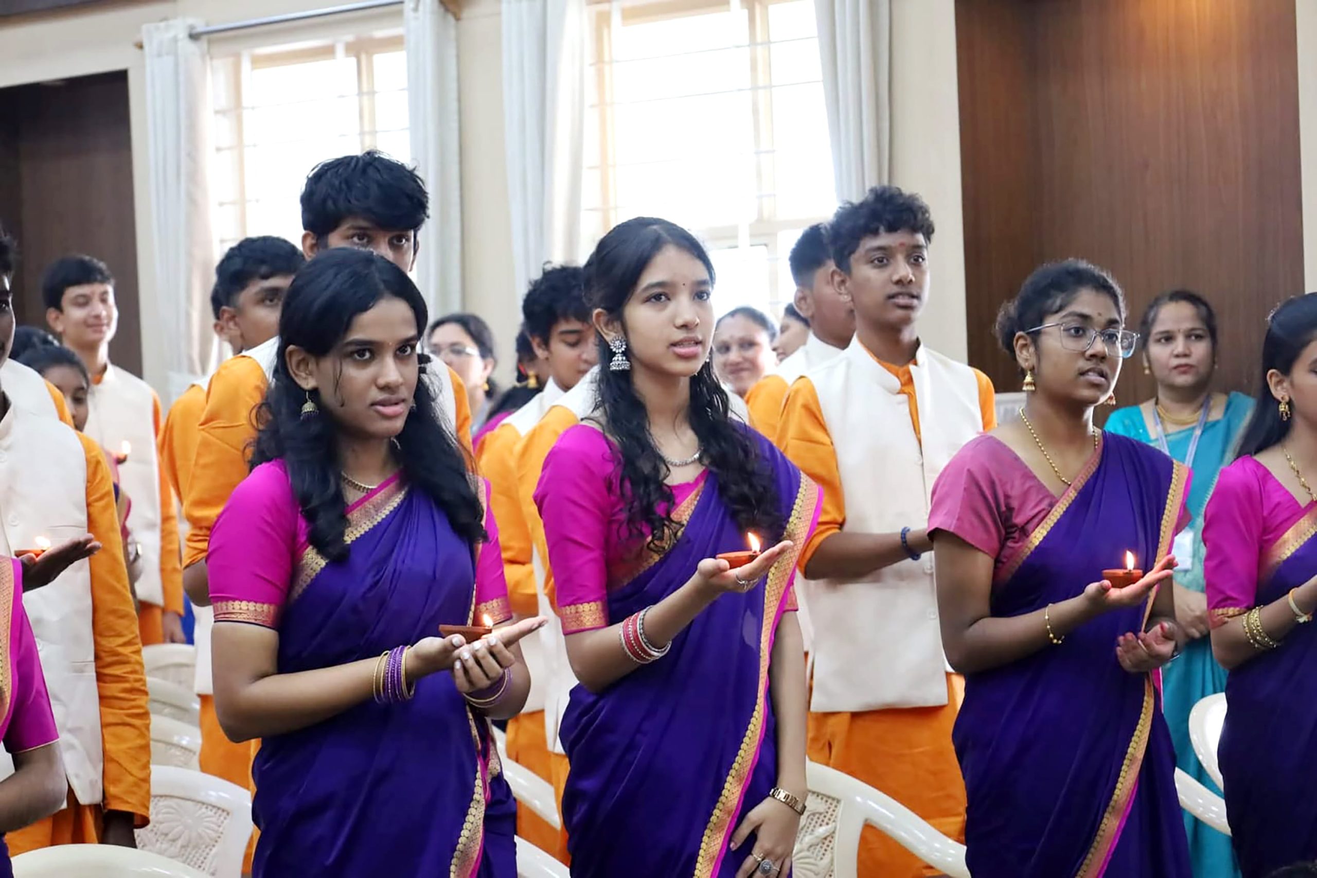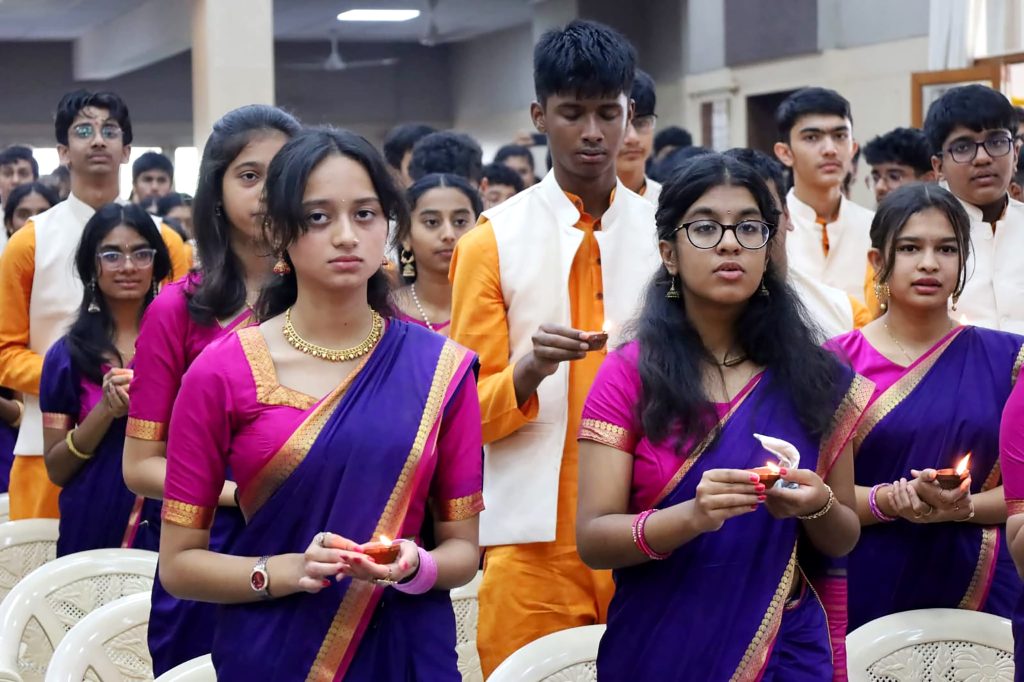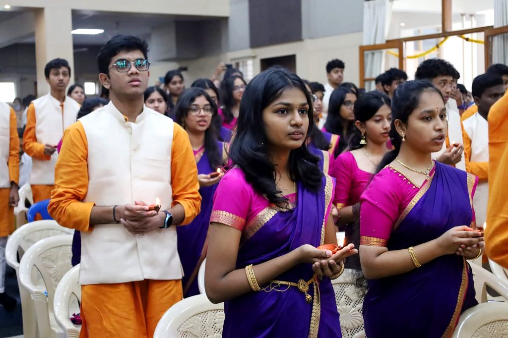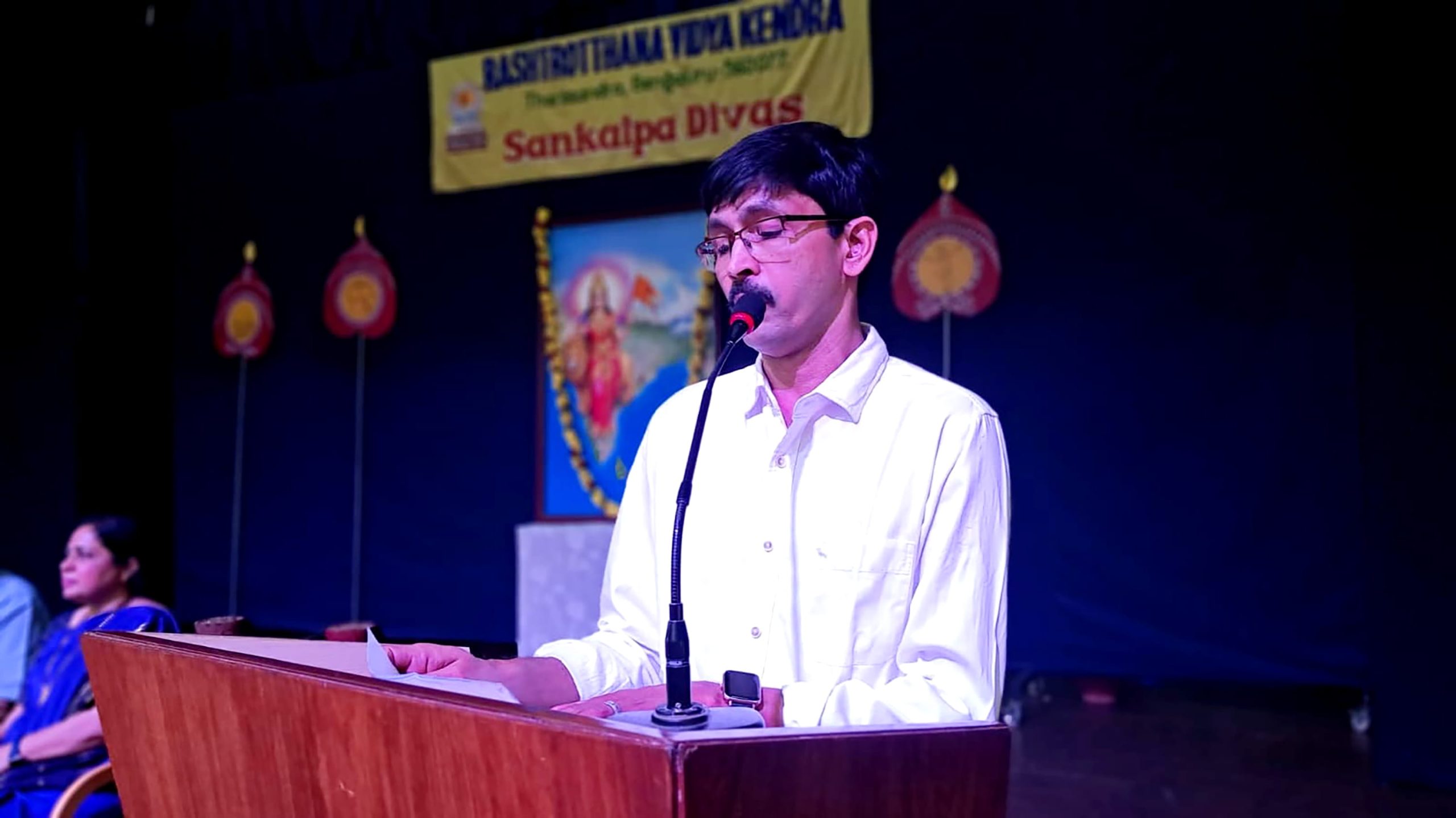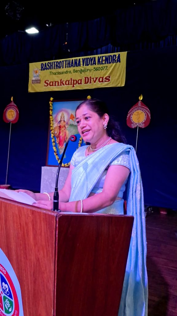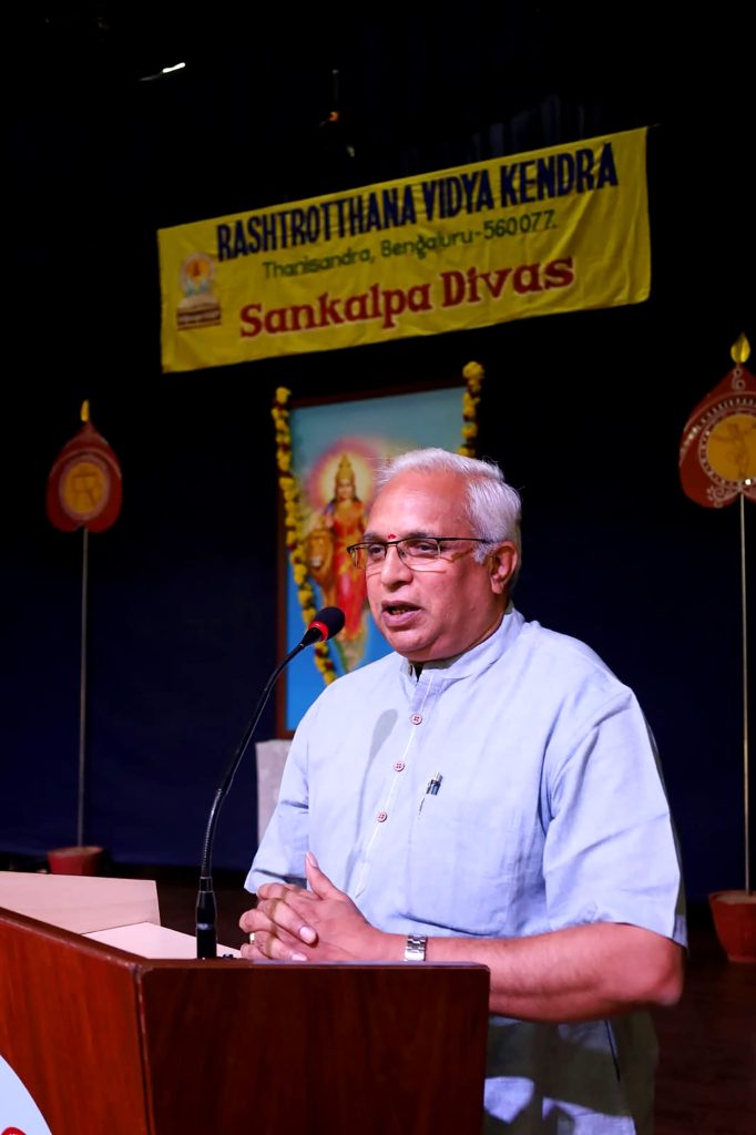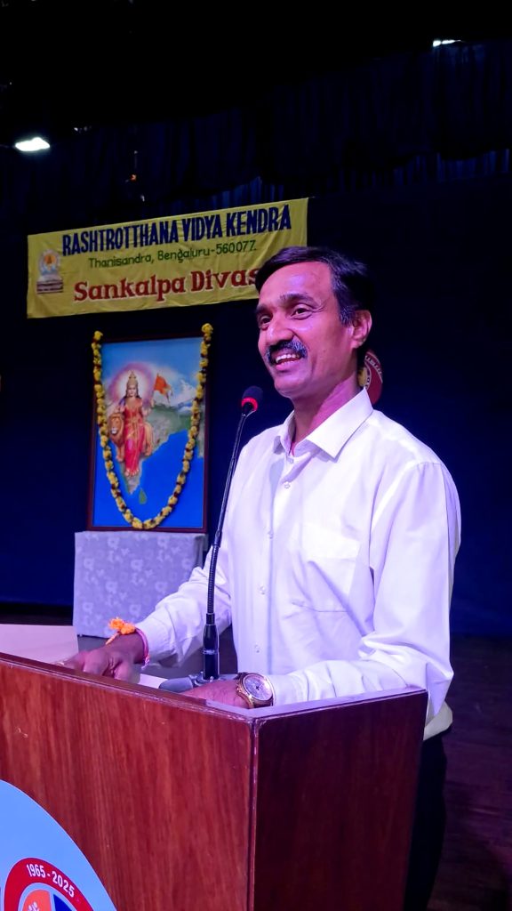 Bengaluru, Mar. 14: ‘Sankalp Divas’ was organized herein Rashtrotthana Vidya Kendra – Arkavati for the students who completed their tenth and twelfth classes in the current academic year. ISRO scientist Sri Jayasimha, who was the chief guest at this program, addressed the students and said, “In addition to learning the syllabus, students of Rashtrotthana School are also being taught Indian culture and traditions that include good values. Therefore, students should implement all the good ideas learned in school in their lives and emerge as achievers who uphold the glory of Mother India. Your parents should be recognised in society through your achievements.” He said, “The life achievements of the brave pilot of the Indian Air Force, Abhinandan Varthaman, great scientists like CV Raman, Vikram Sarabhai, Satish Dhawan, etc., should be an example for us. Let us have the resolve to work hard for the progress of the nation by serving Mother India through achievements along with the syllabus learned in school, traditions and good life values.” Smt. Manjula, the Academic Head of Karnataka Rashtrotthana CBSE Schools and also the Principal of the school, taught ‘Sankalp – Pratigyavidhi’. Then the students lit the Sankalpa lamps under the guidance of the teacher. The students of classes 10 and 12 handed over the Sankalpa lamps to their juniors. In the cultural program, the Ardhanarishwara dance was performed. Then, souvenirs were distributed to all the students. The students and parents shared their experiences.