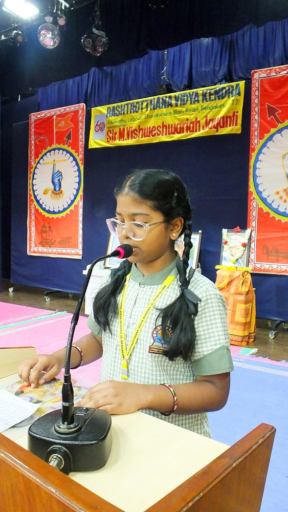 Bengaluru, Sept. 15: Sir M. Vishweshwarayya’s birth anniversary was celebrated herein Rashtrotthana Vidya Kendra –Arkavathy Students spoke about the life achievements of Sir M. Vishweshwarayya.