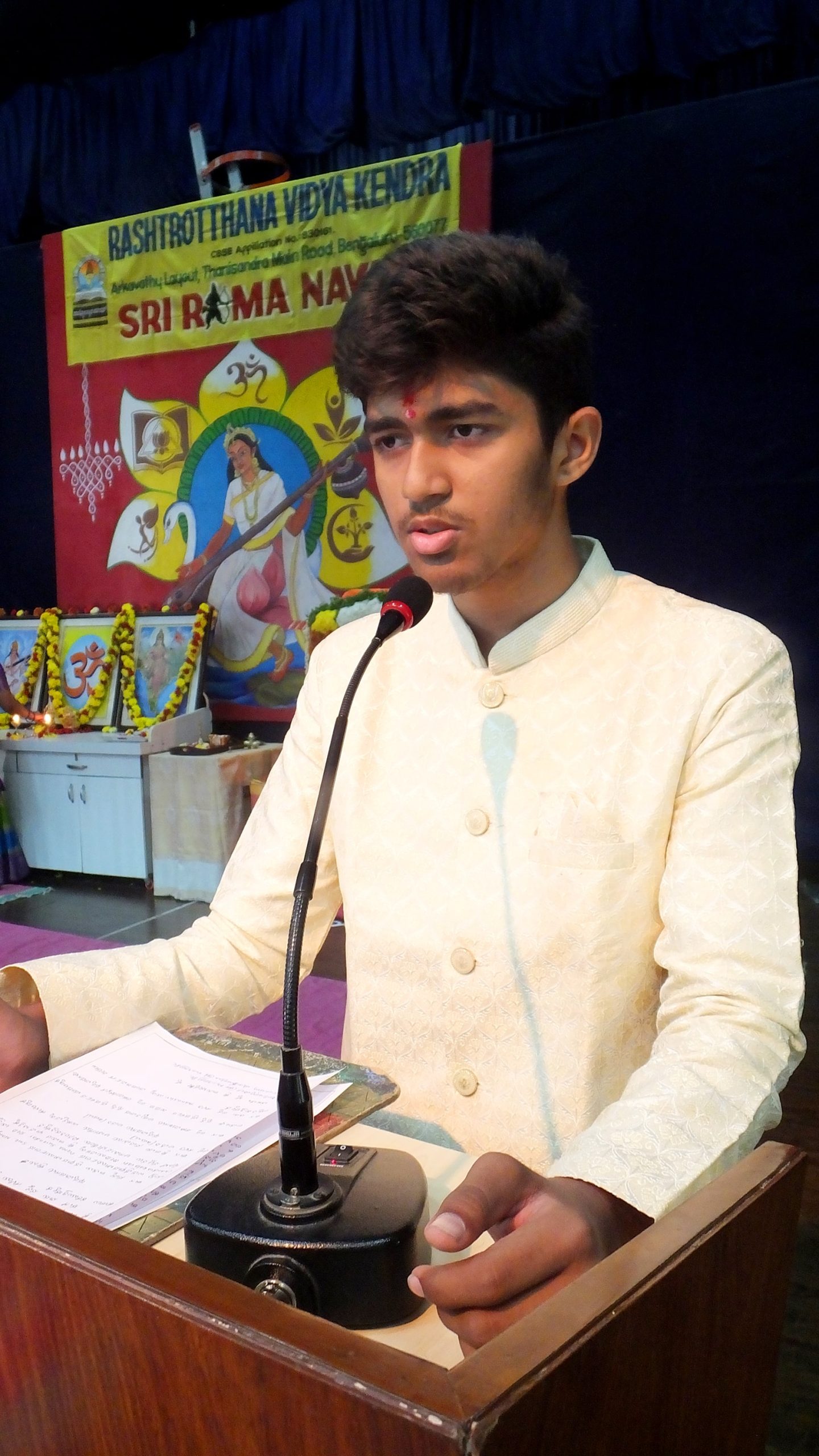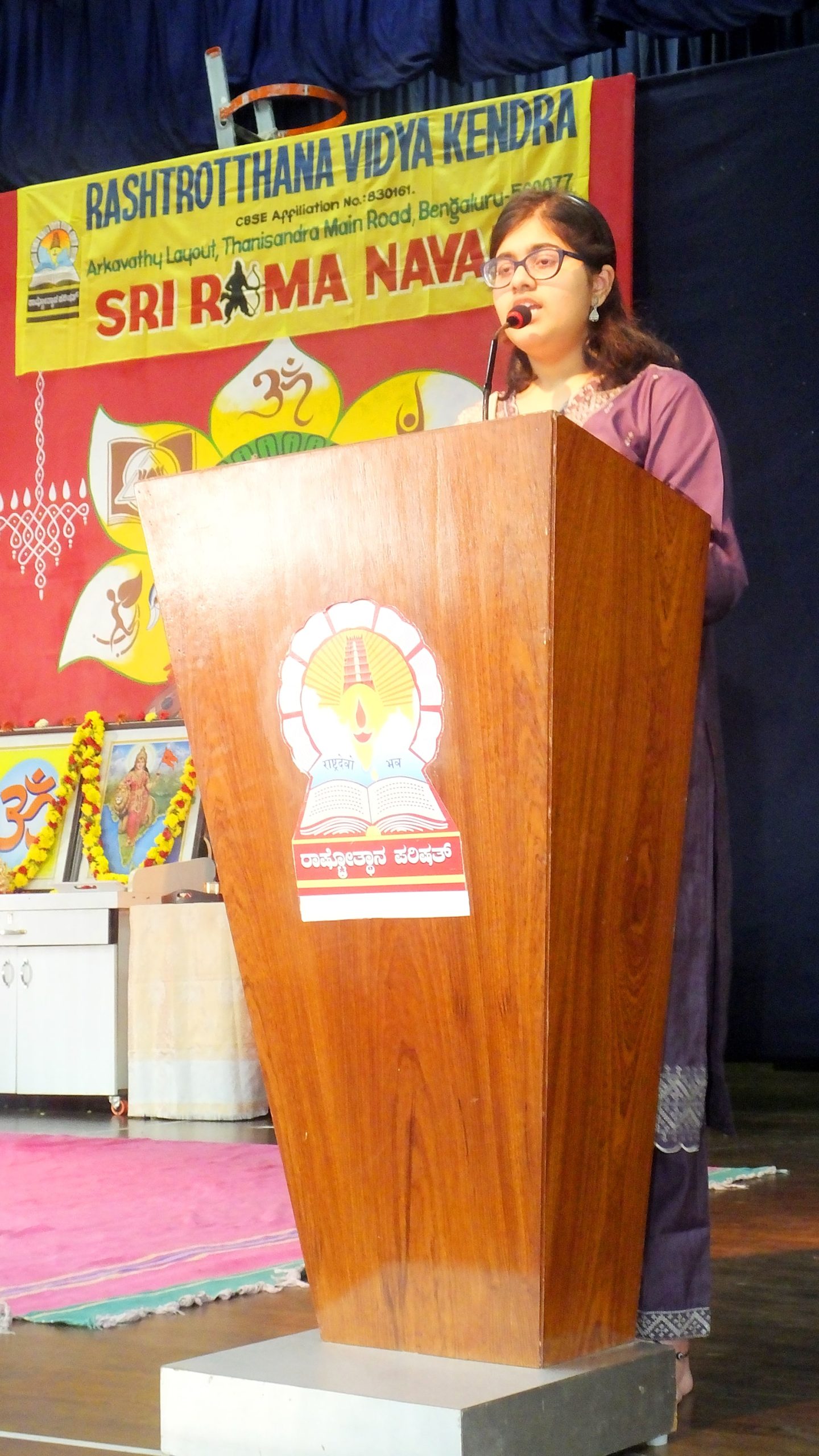 Bengaluru, Apr. 5: Sri Rama Navami was celebrated herein Rashtrotthana Vidya Kendra – Arkavathy. The program began with lighting of lamps, prayers and recitation of shlokas to the portrait of Sri Rama, followed by offering flowers. The students of class 10C gave a speech explaining the importance of Sri Rama Navami and the relevance of Sri Rama’s teachings in today’s world. The girls of class 10C presented a dance performance.