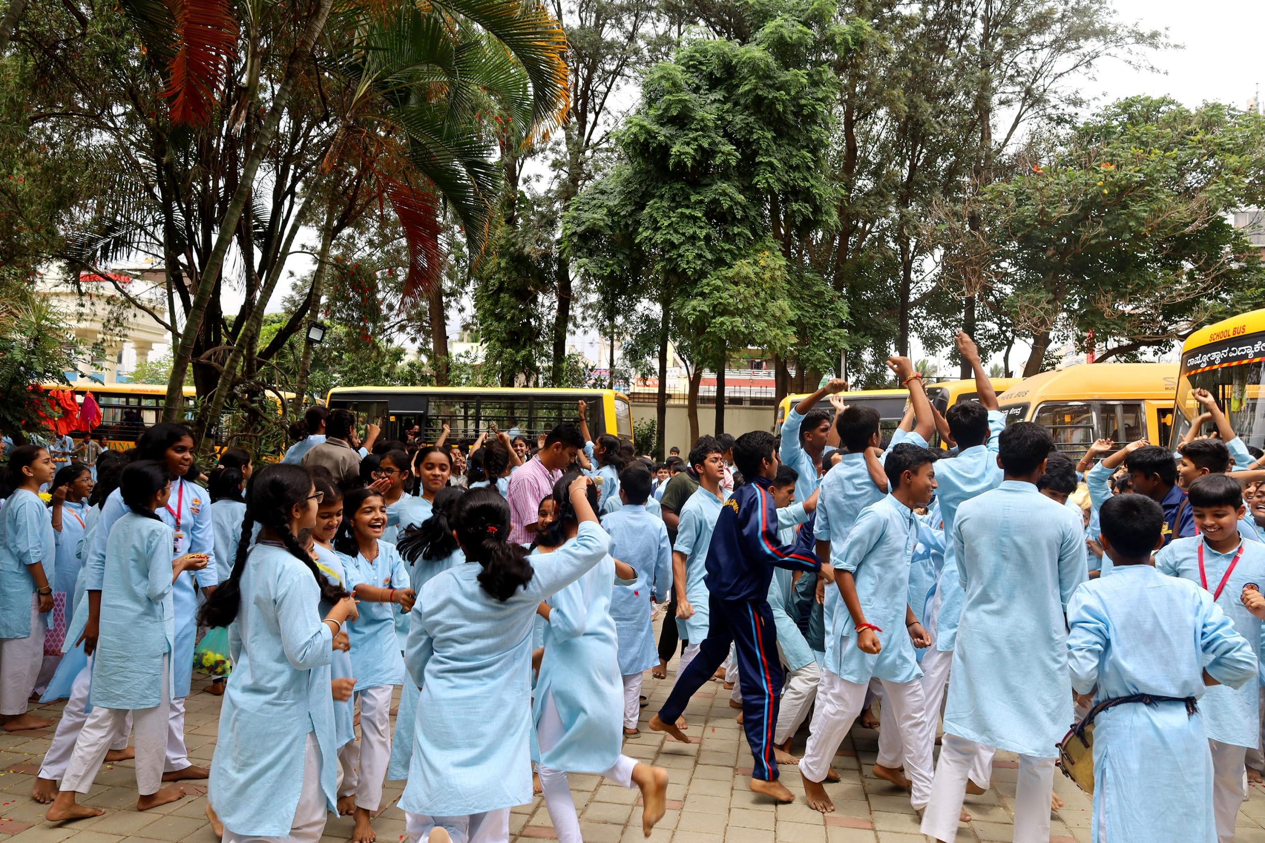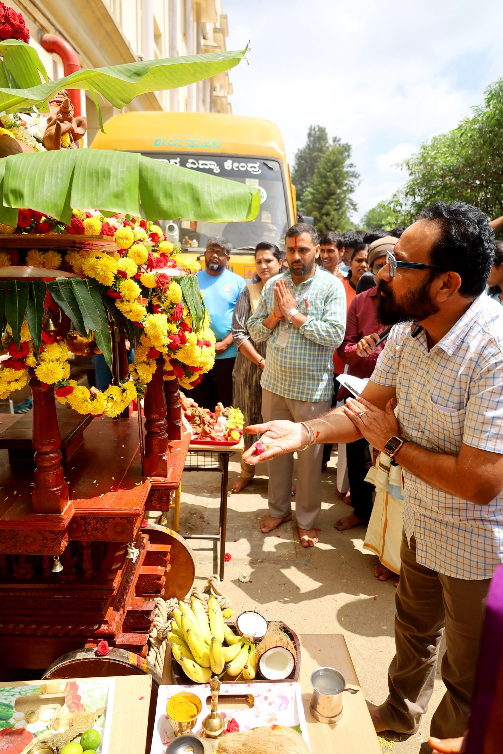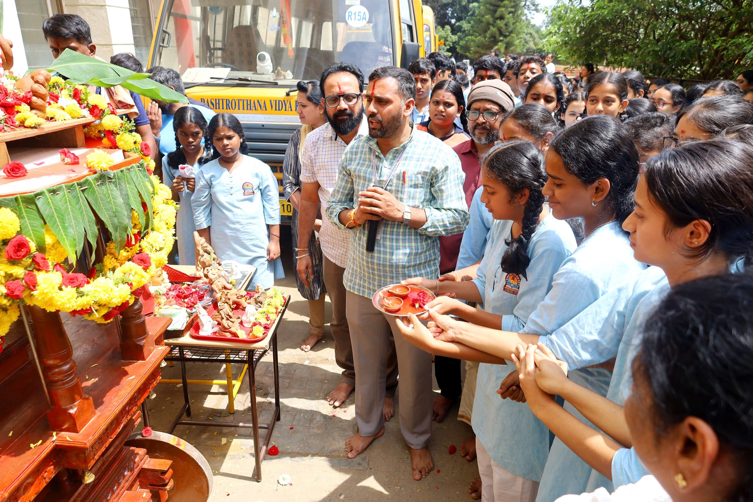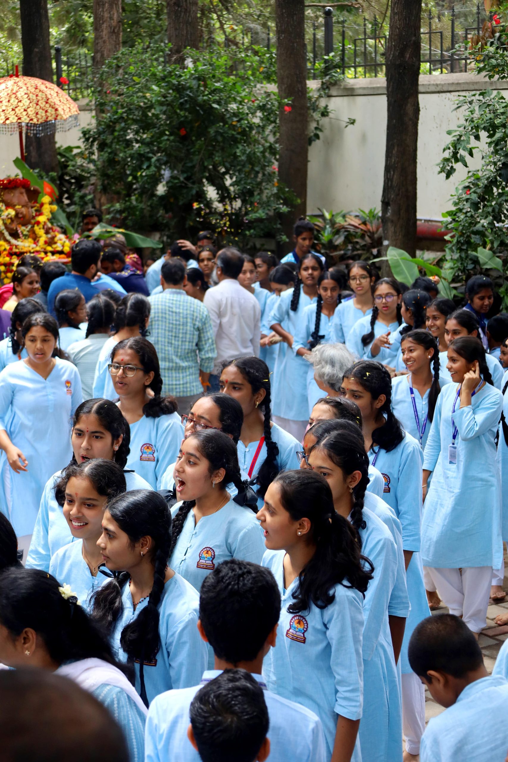 Bengaluru, Aug. 30: The Gauri Ganesh festival concluded with a grand immersion ceremony held in the school premises herein Rashtrotthana Vidya Kendra – Arkavathy. Students from classes 1 to 12, teachers and faculty members participated in the procession. The procession concluded in the school grounds, where the idol was immersed in a large water tank after performing the traditional puja.